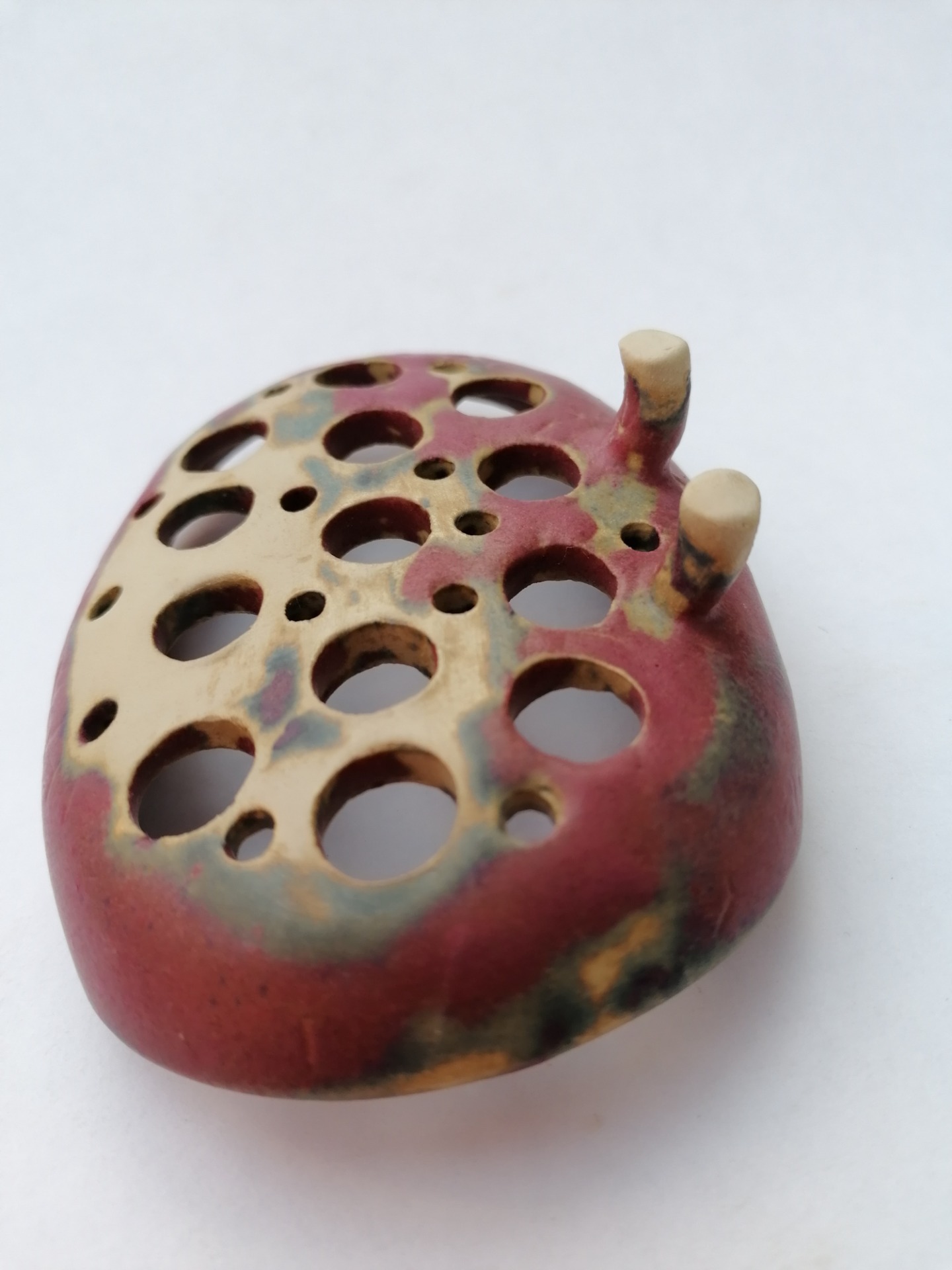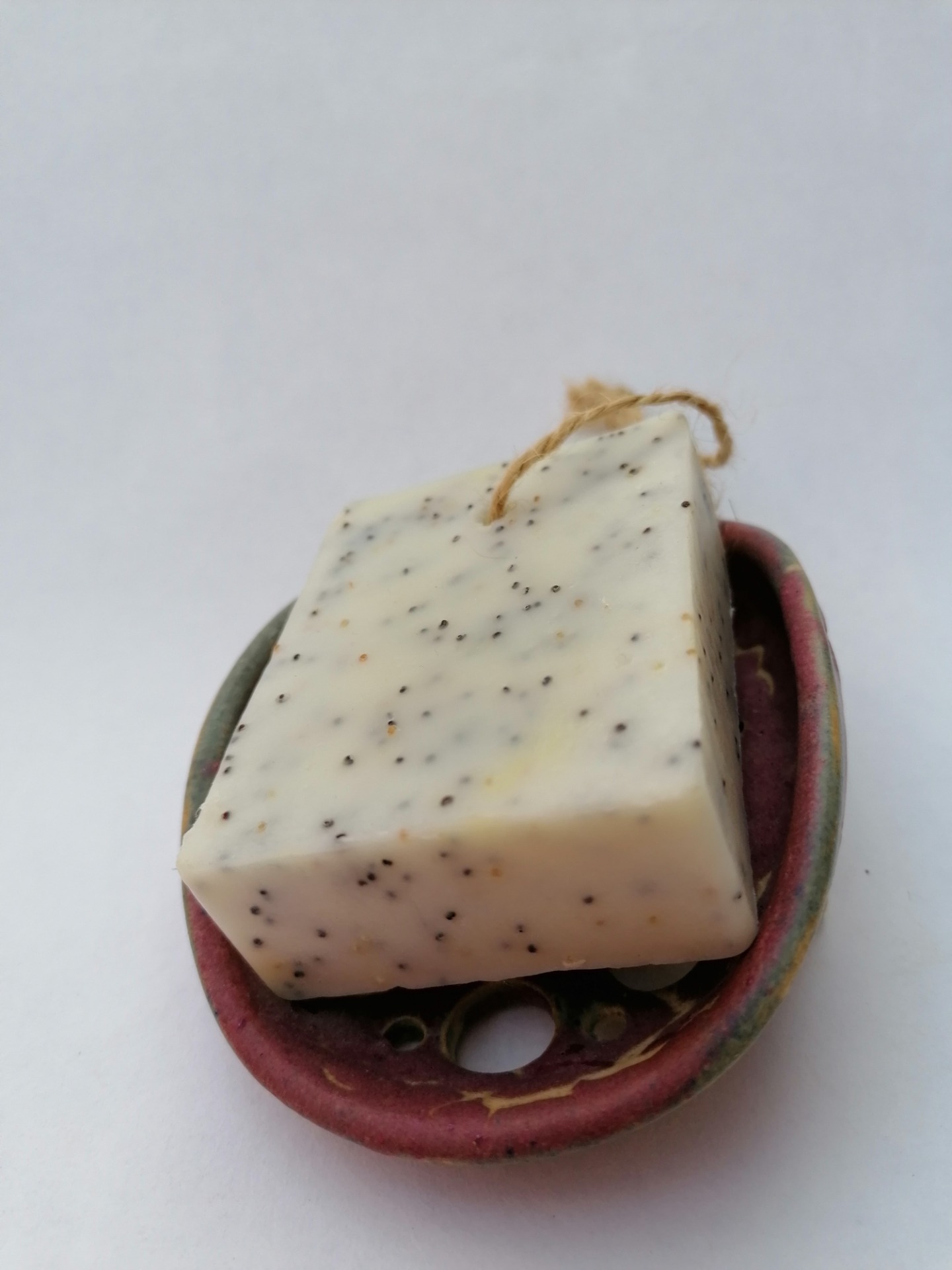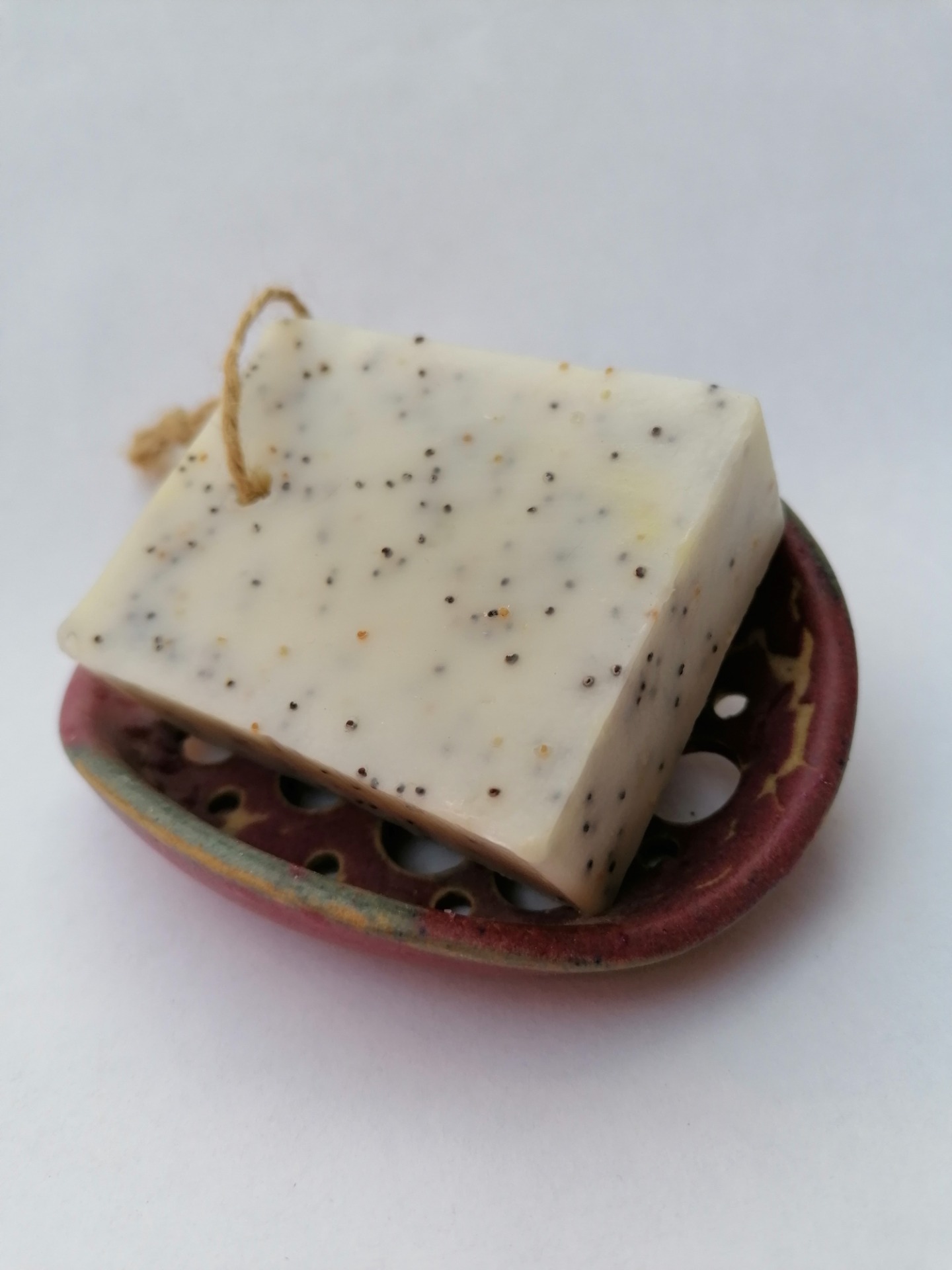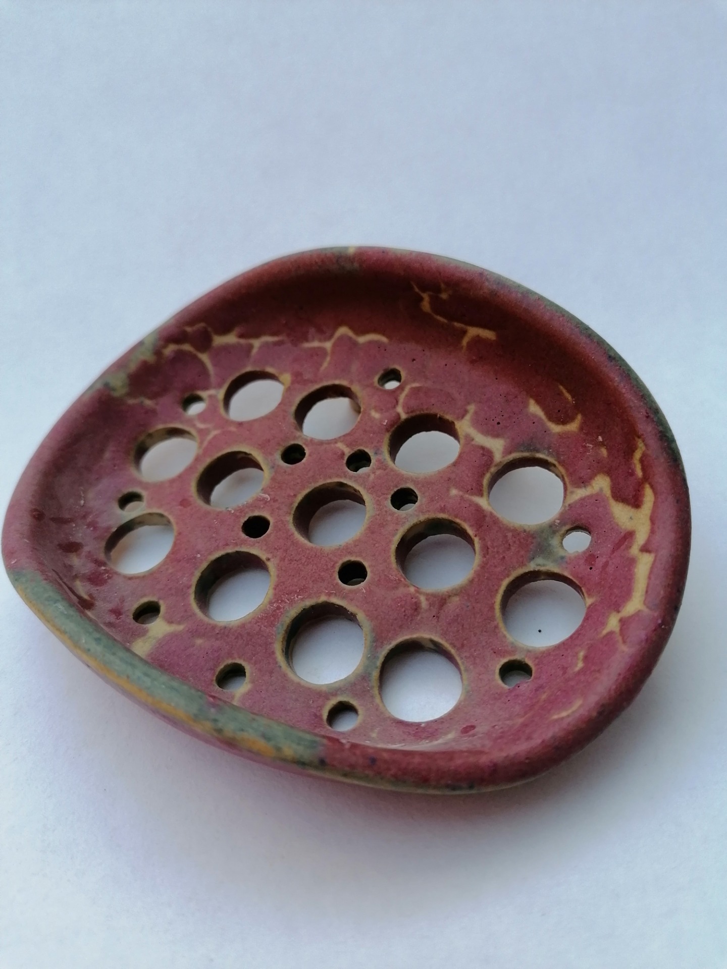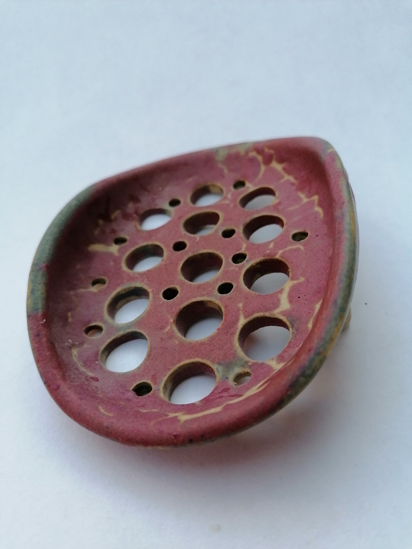 Ručne točená mydelnička na hrnčiarskom kruhu, dvakrát vypálená. Teplota druhého výpalu 1250 °C.